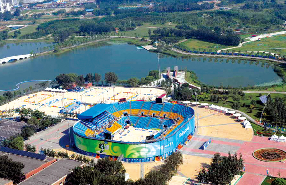朝阳公园沙滩排球场为2008年北京奥运场馆工程,位于北京市朝阳区朝阳公园内,整个工程由以下项目组成:一座12000座位的比赛临时场馆、两块热身场地,其中一块配200座位的媒体专用席位、六块训练场地、三座既有建筑物改造工程、室外广场、道路硬化、市政管线等,工程包括2万㎡人造沙滩和7万㎡广场地面块材铺设。河北省河北四建有限公司施工总承包。
