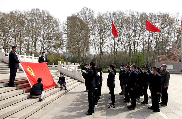 “缅怀先烈,学习英雄;继承遗志,发扬传统;珍惜岗位,勇创佳绩……”铿锵嘹亮的誓言响彻在华北军区烈士陵园纪念碑前。